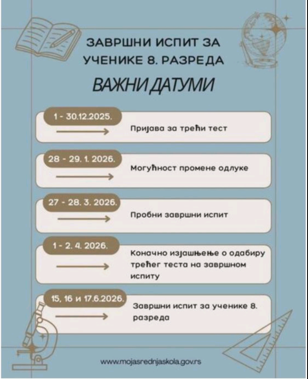 Обавештење за осмакеДатум: 02. Februar 2026 11:11 Категорија: Новости